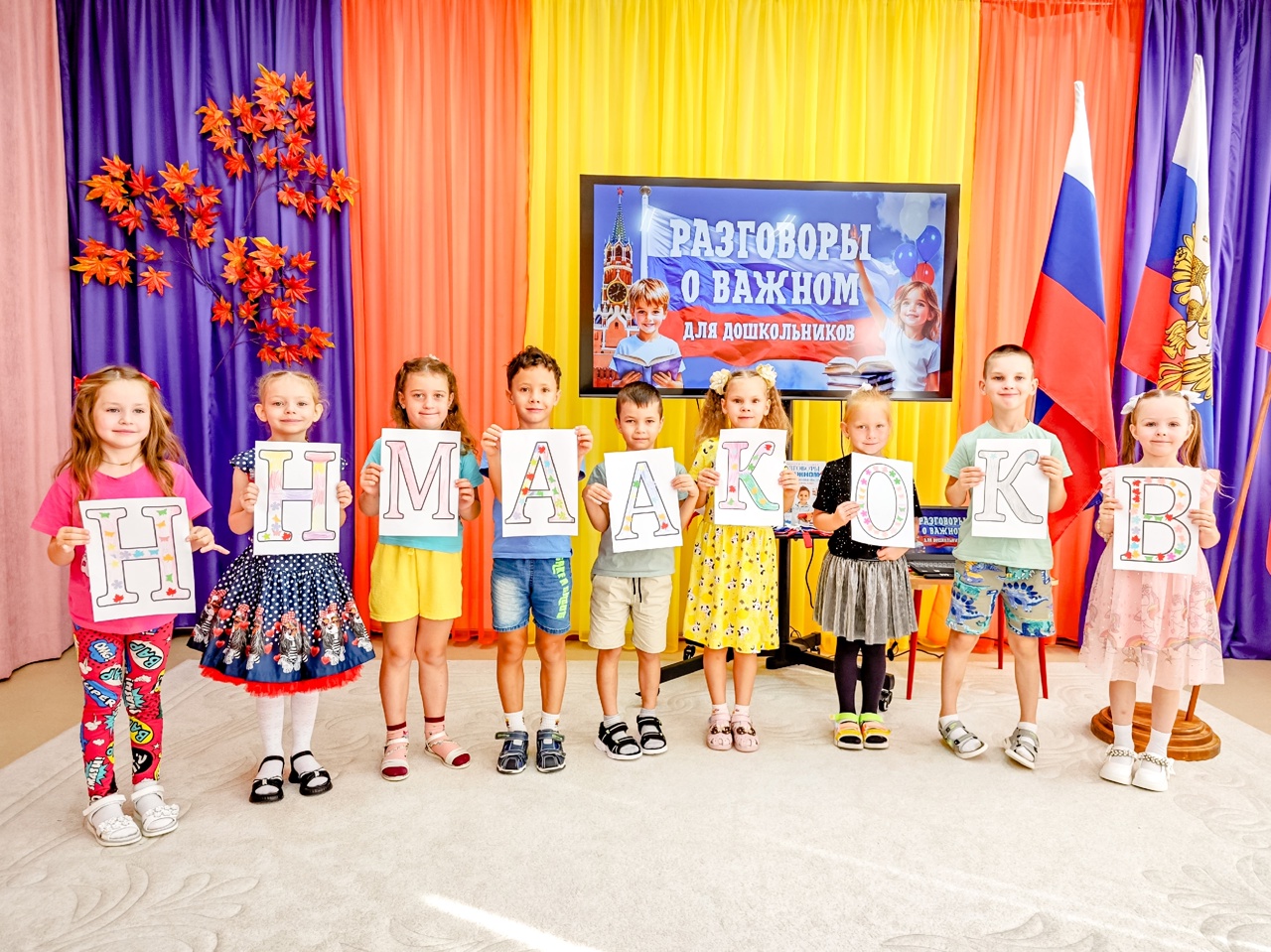 Сегодня понедельник, а значит у подготовишек особенное занятие — «Разговоры о важном», которое традиционно начинается с прослушивания гимна Российской Федерации.