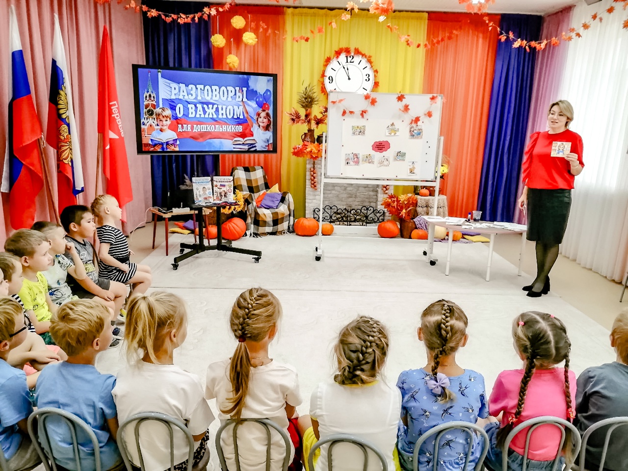 Понедельник начался с традиционных «Разговоров о важном» с увлекательной беседы на тему «День воспитателя и всех дошкольных работников».
